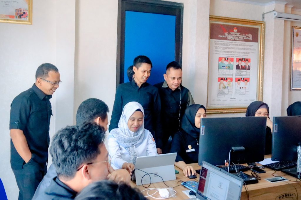 Ketua dan Anggota Bawaslu Provinsi Lampung Iskardo P. Panggar dan M. Teguh melakukan pengawasan secara langsung verifikasi adminstrasi syarat calon anggota DPD dan angota DPRD Provinsi Lampung di Kantor KPU Provinsi Lampung. Rabu, (7/6).