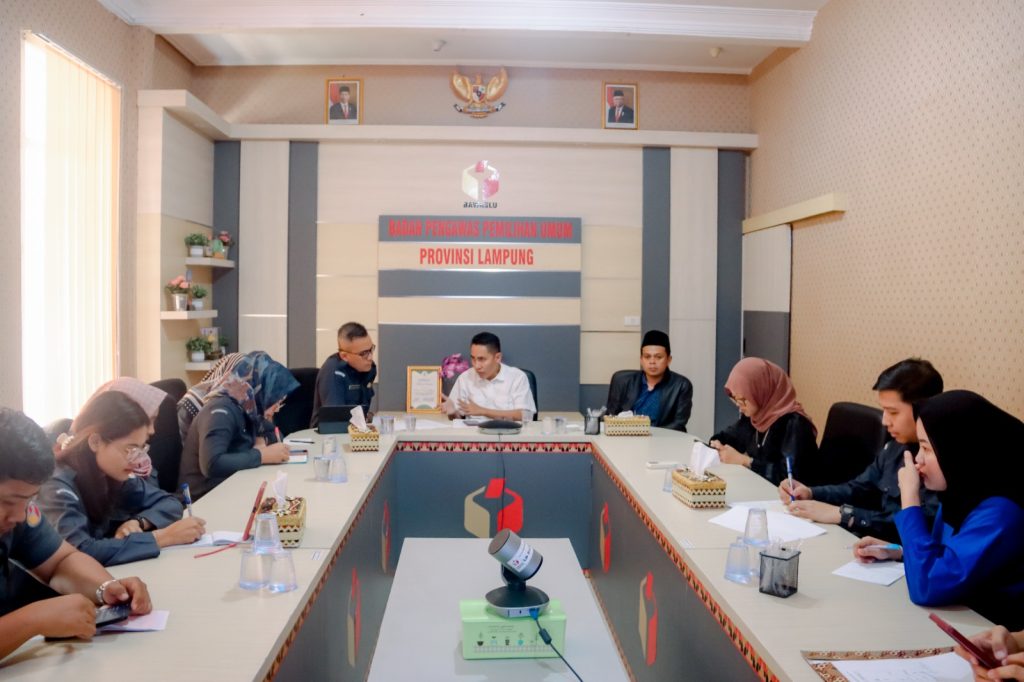 Bawaslu Provinsi Lampung menggelar rapat Pembahasan Pengawasan Verifikasi Administrasi Syarat Calon Anggota DPD dan Verifikasi Administrasi Pengajuan Bakal Calon Anggota DPRD Provinsi Lampung dalam rangka Optimalisasi Pengawasan Tahapan Pencalonan DPD dan DPRD, di Kantor Bawaslu Provinsi Lampung. Selasa, (16/5)