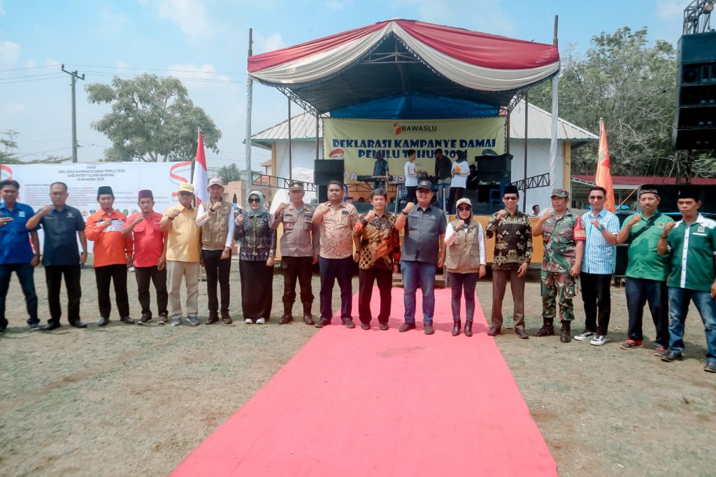 Aksi damai tersebut di hadiri anggota Bawaslu Lampung suheri dan Pj. Bupati Tulang Bawang yang diwakili oleh kaban kesbangpol saut sinurat, serta jajaran forkopimda dan partai politik peserta pemilu yang turut menyemarakkan kegiatan tersebut.