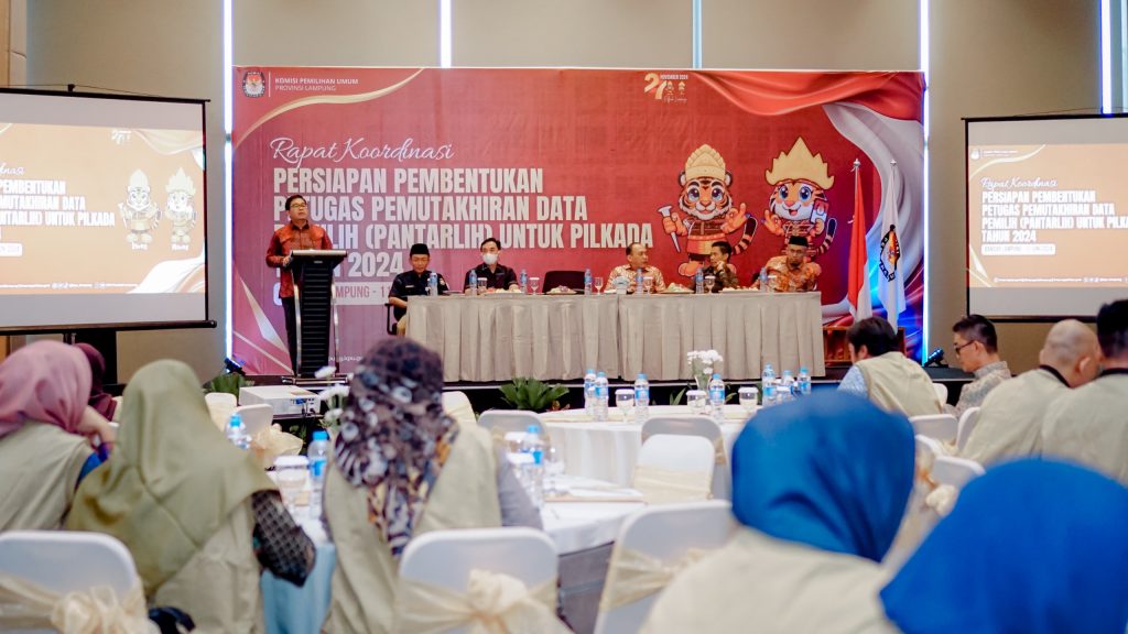Anggota Bawaslu Lampung Gistiawan Hadiri Rapat Koordinasi Persiapan Pembentukan Petugas Pemutakhiran Data Pemilih (PPDP) untuk Pilkada Tahun 2024 pada KPU Kabupaten/Kota se-Provinsi Lampung