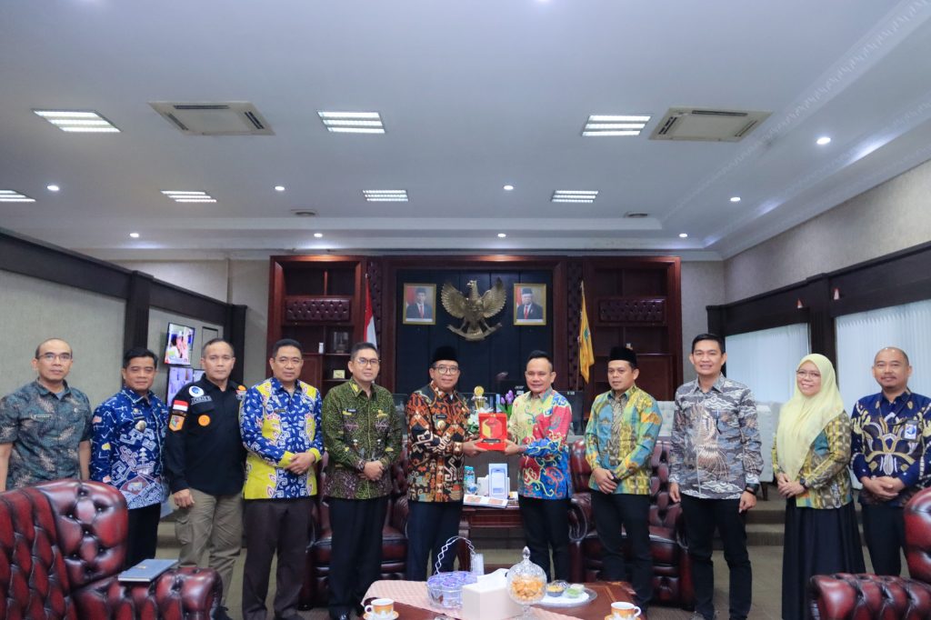 Ketua Bawaslu Provinsi Lampung Iskardo P. Panggar (Sebelah Kanan) beraudiensi dengan Penjabat (Pj) Gubernur Provinsi Lampung Samsudin di Ruang Kerja Gubernur, Jumat (05/07).