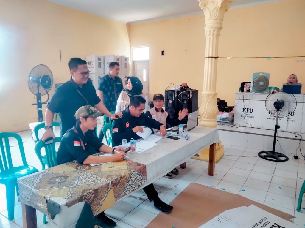 Anggota Bawaslu Lampung Suheri bersama Tim Bawaslu Lampung lakukan pengawasan Rekapitulasi Hasil Penghitungan Perolehan Suara Pemilu 2024 Tingkat Kecamatan di Kabupaten Lampung Utara, Kamis (22/2).