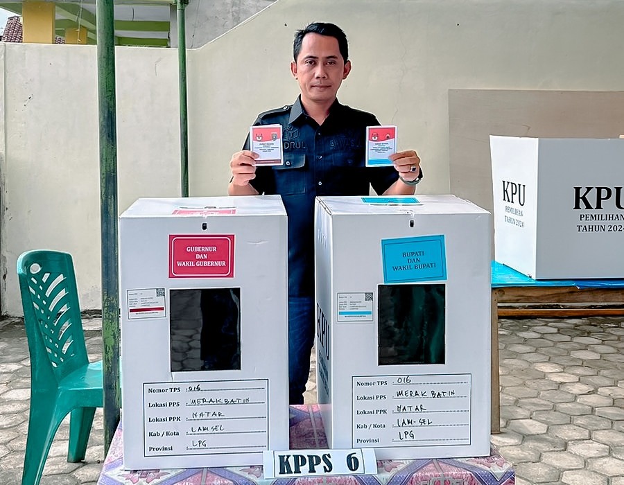 Anggota Bawaslu Provinsi Lampung, Hamid Badrul Munir, menggunakan hak pilihnya dalam Pemilihan Kepala Daerah (Pilkada) Serentak 2024 pada Rabu pagi (27/11). Ia memberikan suara di Tempat Pemungutan Suara (TPS) 016, Desa Merak Batin, Kecamata Natar, Lampung Selatan.