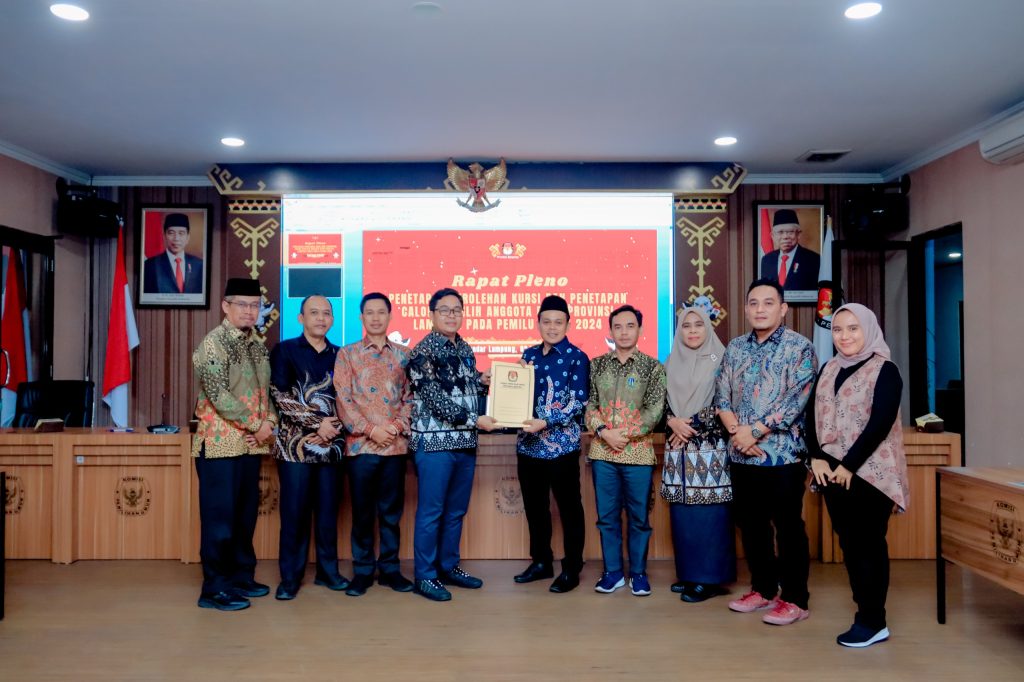 Komisi Pemilihan Umum Provinsi Lampung menetapkan secara resmi 85 calon anggota legislatif (Caleg) DPRD Provinsi Lampung periode 2024-2029 di Kantor KPU Lampung (2/5).