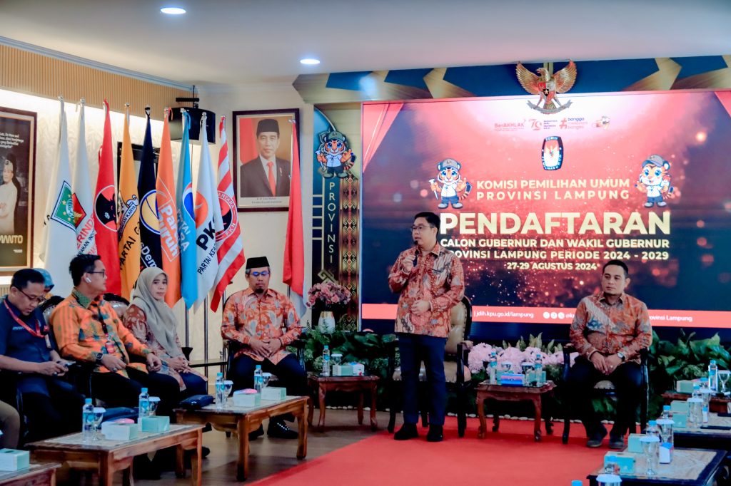 Komisi Pemilihan Umum (KPU) Lampung secara resmi membuka pendaftaran calon gubernur dan wakil gubernur untuk periode 2024-2029. Dalam sambutannya, Ketua KPU Lampung, Erwan Bustami, mengungkapkan bahwa pendaftaran dimulai pada hari ini, 27 Agustus 2024, dan akan berlangsung hingga 29 Agustus 2024. Ia menekankan bahwa pendaftaran akan dibuka setiap hari mulai pukul 08.00 hingga 16.00 WIB, sementara pada hari terakhir, pendaftaran akan ditutup pada pukul 23.59 WIB.