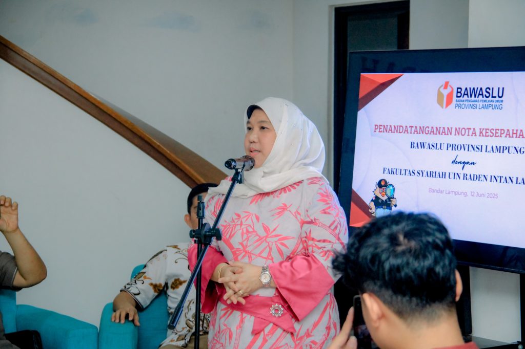 Sementara itu, Dr. Efa Rodiah Nur menegaskan pentingnya keterlibatan aktif perguruan tinggi dalam mendukung penyelenggaraan pemilu yang bermartabat. “Fakultas Syariah UIN Raden Intan Lampung tidak hanya melahirkan lulusan yang kompeten secara akademik, tapi juga ingin membekali mereka dengan pengalaman praktis dan pemahaman nilai-nilai demokrasi. Kerja sama ini akan membuka banyak ruang untuk kolaborasi riset, seminar, dan pengabdian masyarakat bersama Bawaslu,†katanya.