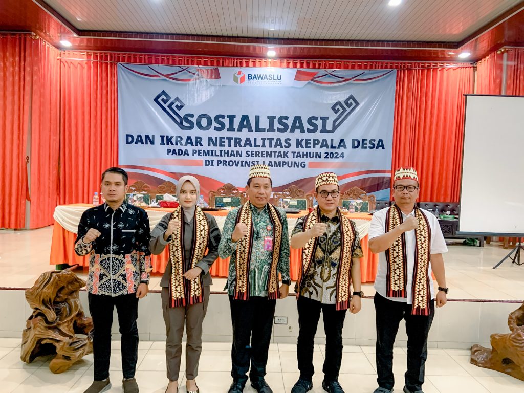 Badan Pengawas Pemilu (Bawaslu) Provinsi Lampung menggelar Sosialisasi Ikrar Netralitas Kepala Desa/Pekon pemangku pemerintahan di tingkat Pekon/Kelurahan, menghadapi tahapan pemilihan serentak pada Pemilihan Kepala Daerah Tahun 2024 di Gedung GSG Pekon Gisting Bawah, Kecamatan Gisting Kabupaten Tanggamus, Provinsi Lampung, Kamis, ( 26/09).