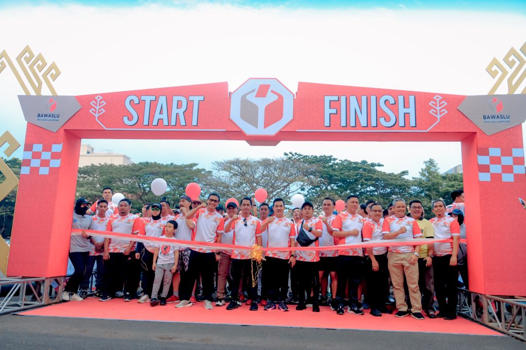 Bawaslu Provinsi Lampung menggelar acara Kick Off Pengawasan Tahapan Penyelenggaraan Pilkada 2024 Soswatif Fun Run di Lapangan Saburai (25/08).
