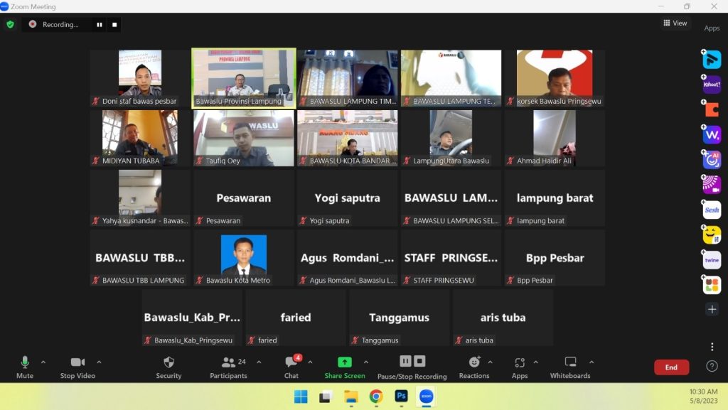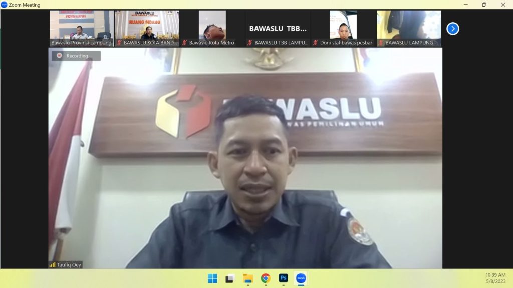 Bawaslu Provinsi Lampung melaksanakan kegiatan Sosialisasi Monitoring dan Evaluasi Keterbukaan Informasi Publik pada Bawaslu Kabupaten/Kota se-Provinsi Lampung Tahun 2023 secara daring di ruang rapat sai batin. Senin, (8/5).