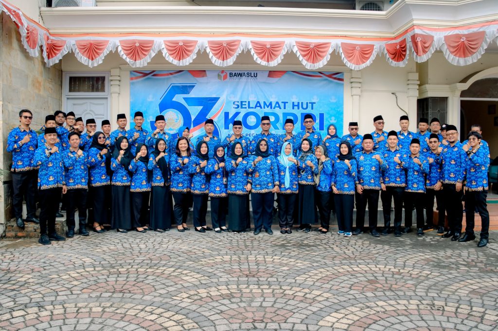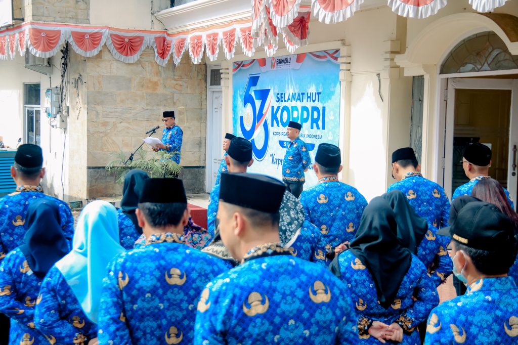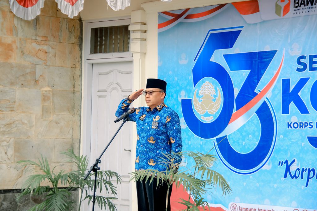 Bawaslu Provinsi Lampung menggelar upacara peringatan Hari Ulang Tahun (HUT) ke-53 Korps Pegawai Republik Indonesia (KORPRI) 2024, Jumat (29/11).