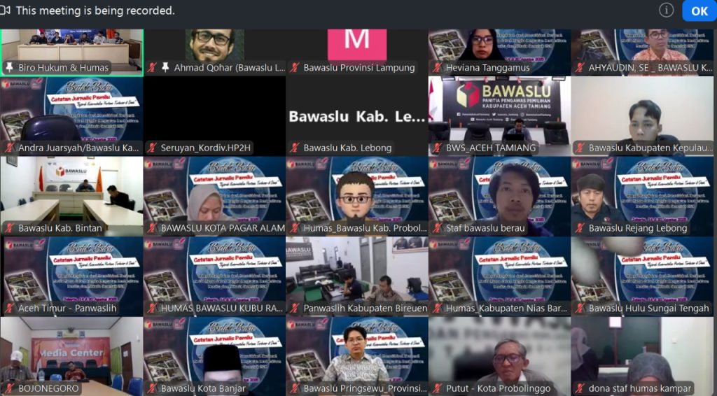 Anggota Bawaslu Provinsi Lampung, Ahmad Qohar, menghadiri secara daring acara Bedah Buku “Catatan Jurnalis Pemilu: Sejarah Keserentakan Pertama Terbesar di Dunia†yang diselenggarakan Bawaslu RI bersama Koalisi Pewarta Pemilu dan Demokrasi (KPPD), Kamis (14/8).