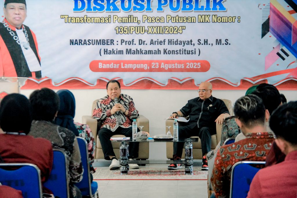Pada kesempatan tersebut, Anggota Bawaslu Provinsi Lampung, Hamid Badrul Munir menekankan pentingnya forum akademik sebagai ruang kolaborasi antara lembaga penyelenggara pemilu dan perguruan tinggi. “Bawaslu selalu terbuka dengan ruang diskusi seperti ini. Mahasiswa dan kalangan akademisi adalah mitra strategis kami dalam menjaga demokrasi. Dengan adanya diskusi publik, pemahaman terhadap putusan MK tidak hanya berhenti di ranah hukum, tetapi juga dapat dipahami masyarakat luas,†ujar Hamid.