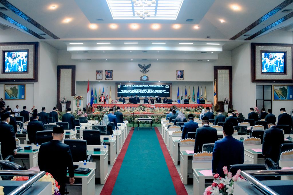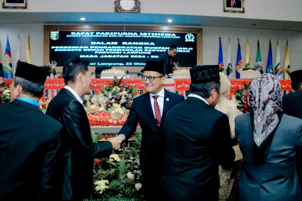 Dewan Perwakilan Rakyat Daerah (DPRD) Provinsi Lampung menggelar rapat paripurna istimewa dalam rangka pengucapan sumpah pimpinan DPRD masa jabatan 2024-2029. Rapat ini berlangsung berdasarkan Surat Keputusan Menteri Dalam Negeri Republik Indonesia Nomor 100.2.1.4/4316 Tahun 2024 tentang peresmian pengangkatan pimpinan DPRD Provinsi Lampung.