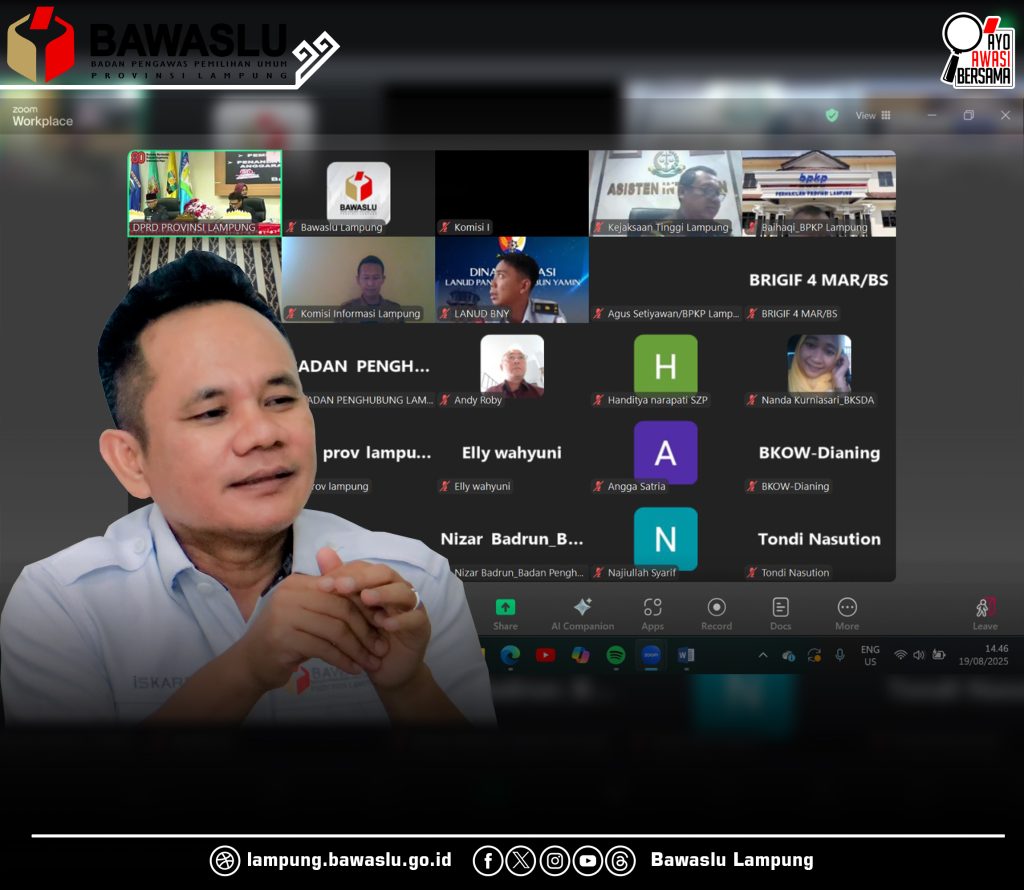 Ketua Bawaslu Provinsi Lampung Iskardo P. Panggar menghadiri Rapat Paripurna DPRD secara virtual yang menetapkan Program Pembentukan Peraturan Daerah (Propemperda) Tahun 2026 oleh Dewan Perwakilan Rakyat Daerah (DPRD) Provinsi Lampung di Ruang Rapat Paripurna DPRD Provinsi Lampung, Selasa (19/8).