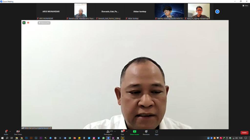 Anggota Bawaslu Lampung, Suheri hadiri Rapat Pengawasan Tahapan Pencalonan Anggota DPR, DPRD Provinsi, dan DPRD Kab/Kota yang diselenggarakan oleh Bawaslu RI melalui Zoom Meeting (01/05)