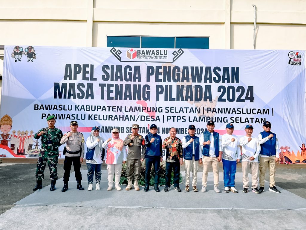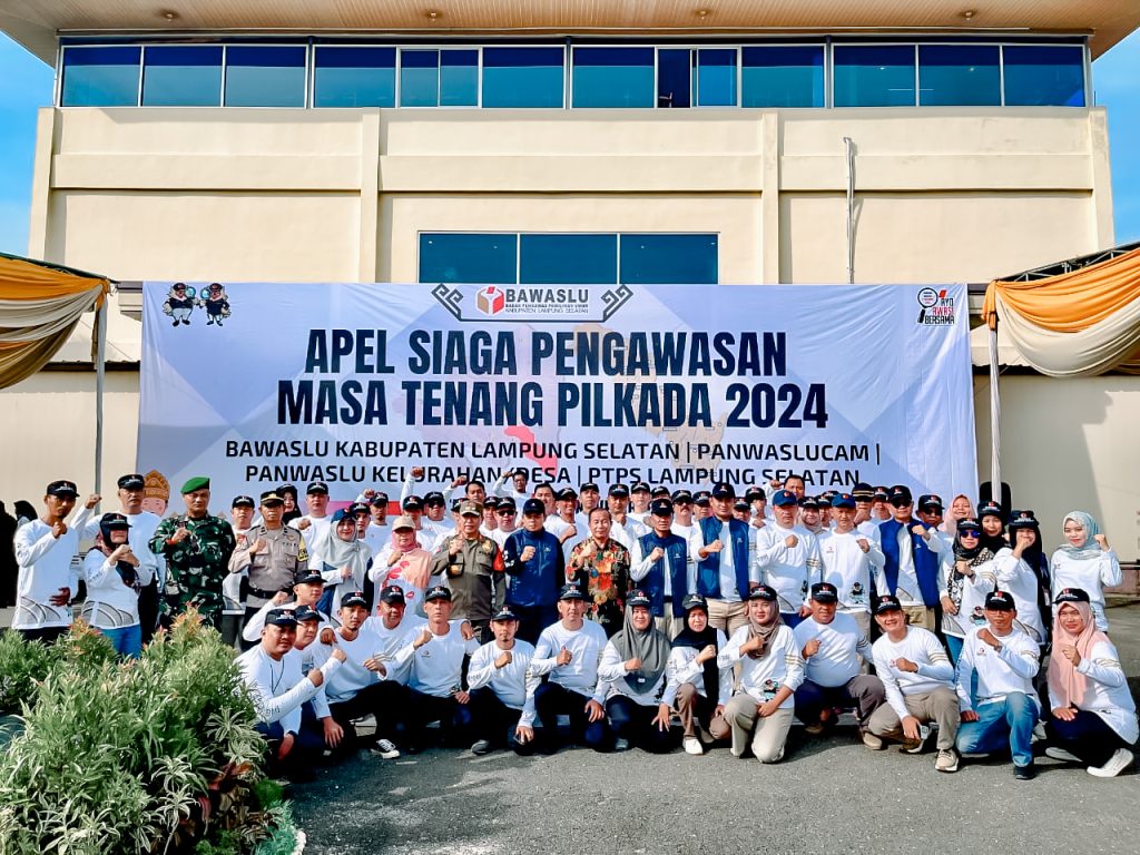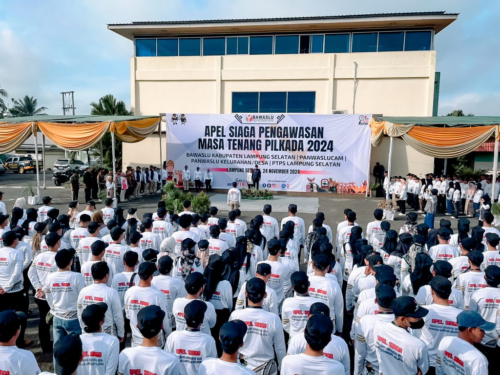 Memasuki hari tenang Pemilihan Kepala Daerah (Pilkada) serentak tahun 2024, Bawaslu Lamsel menggelar Apel Siaga di halaman Hotel Raden Intan Natar, Minggu (24/11).