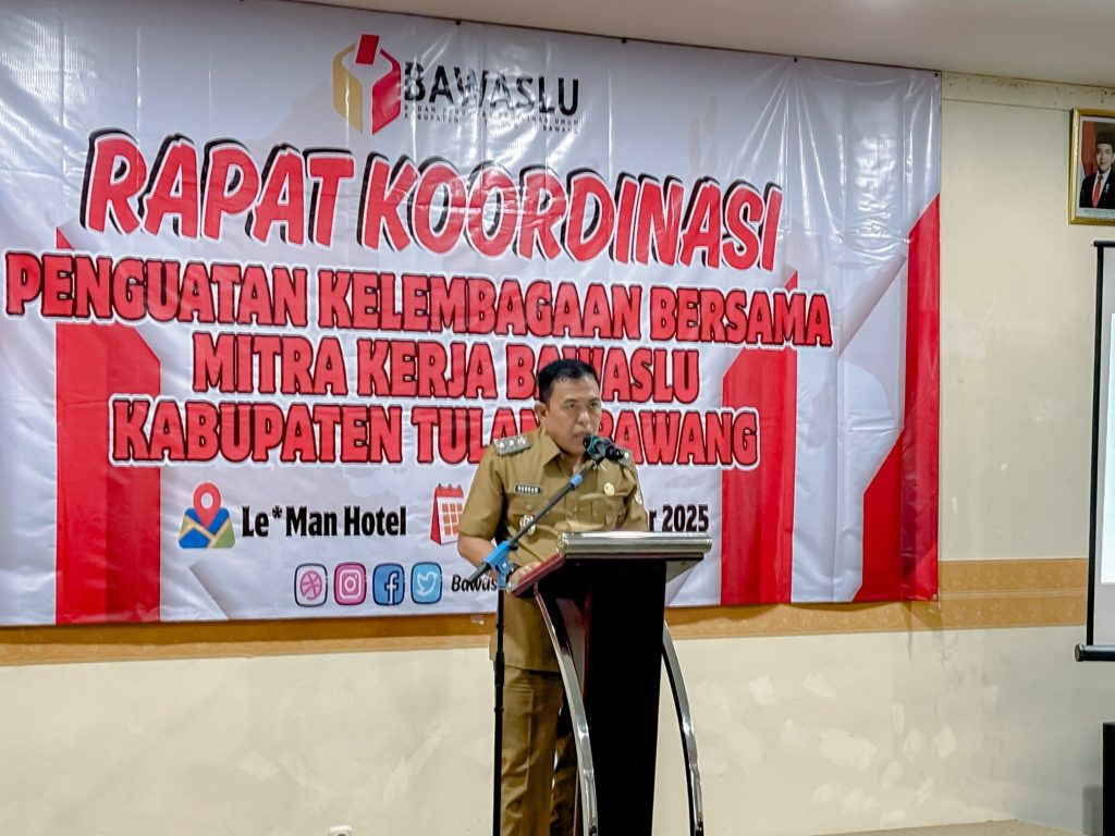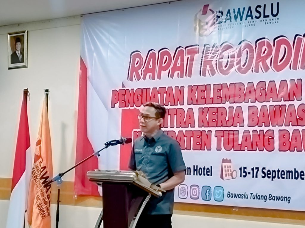 Badan Pengawas Pemilihan Umum (Bawaslu) Provinsi Lampung terus meneguhkan komitmen dalam menjaga kualitas demokrasi, meski saat ini tidak sedang berada pada tahapan pemilu. Hal itu tercermin dalam kegiatan Rapat Koordinasi dan Penguatan Kelembagaan bersama Mitra Kerja Bawaslu yang diselenggarakan oleh Bawaslu Kabupaten Tulang Bawang di Banjar Agung, Senin (15/09).