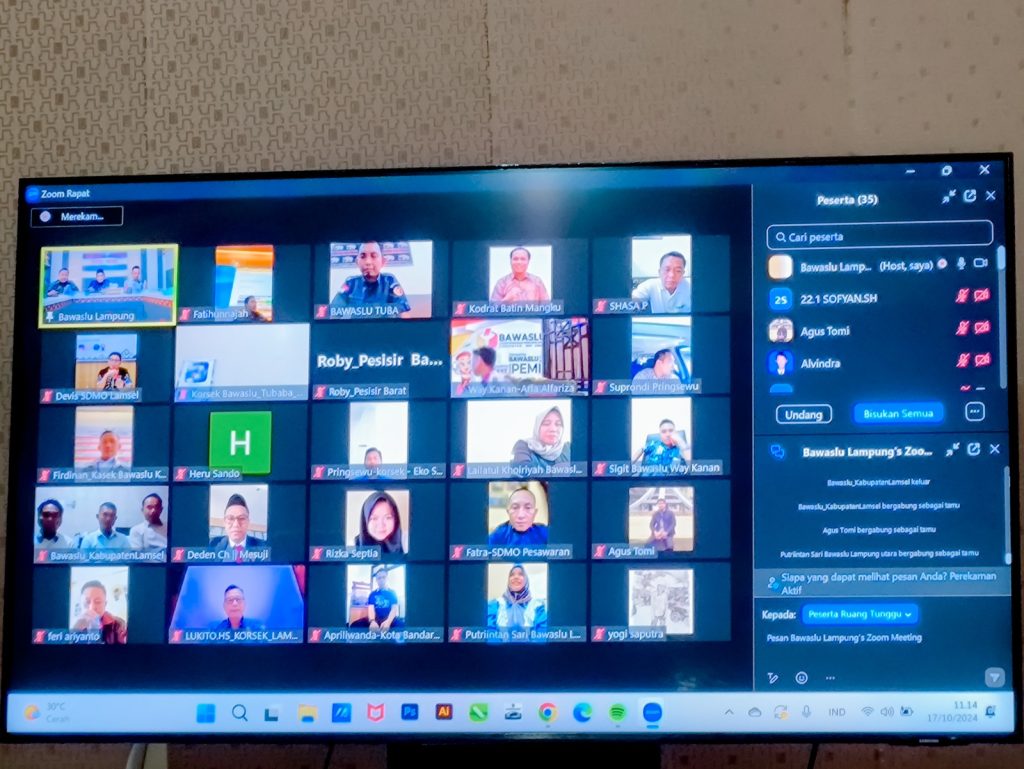 Dalam upaya memperkuat kesiapan pengawasan Pilkada 2024 Bawaslu Provinsi Lampung mengadakan pembinaan daring untuk jajaran Adhoc di seluruh kabupaten/kota. Acara ini dipimpin oleh Ketua Bawaslu Lampung Iskardo P. Panggar yang menekankan pentingnya komunikasi yang baik antara pimpinan dan sekretariat, terutama menjelang pemungutan suara, Kamis (17/10).