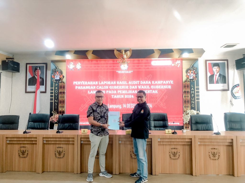 Penyerahan hasil audit tersebut ditandai dengan penandatanganan berita acara penyerahan yang dilakukan bersama oleh tim pemenangan pasangan calon termasuk Bawaslu Provinsi Lampung. Penyerahan ini juga dihadiri oleh berbagai pihak terkait sebagai bentuk transparansi dan komitmen untuk memastikan kepatuhan terhadap aturan kampanye.