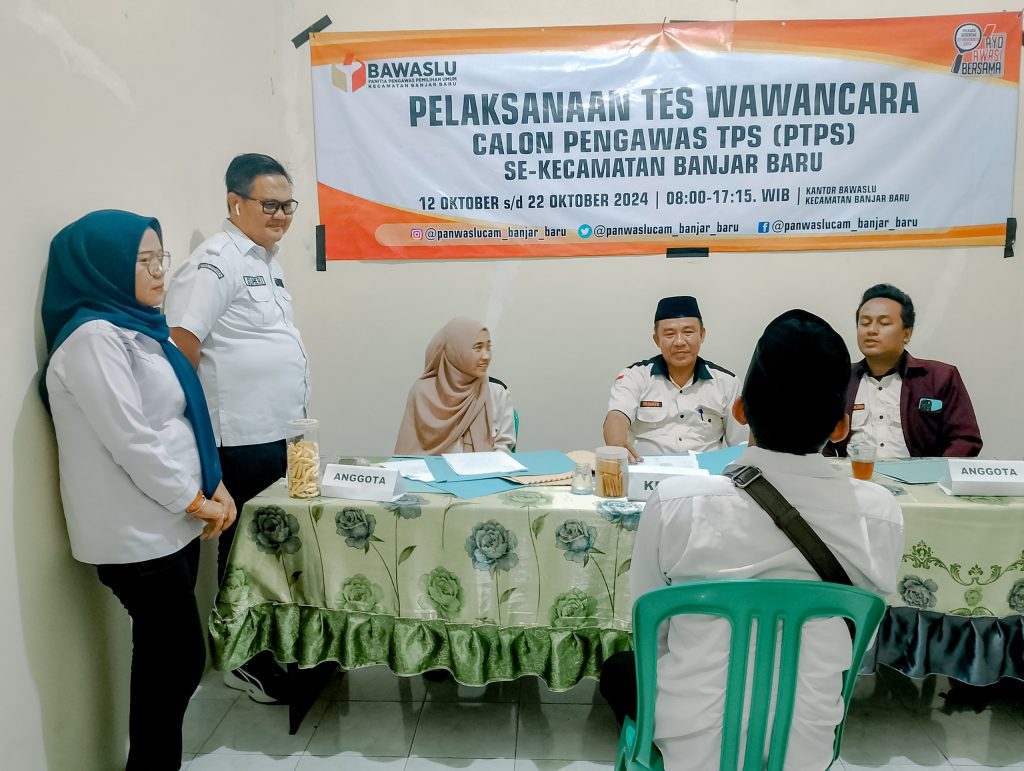 "Saya tekankan kepada kawan-kawan Panwaslu di sini, bahwa dalam tahapan wawancara ini, kita harus memastikan bahwa calon yang diterima adalah mereka yang berintegritas. Proses seleksi ini sangat krusial karena kinerja mereka akan menentukan kualitas pengawasan di lapangan," ujar Suheri, Kamis (17/10), saat berada di Sekretariat Panwaslu Kecamatan Banjar Baru.