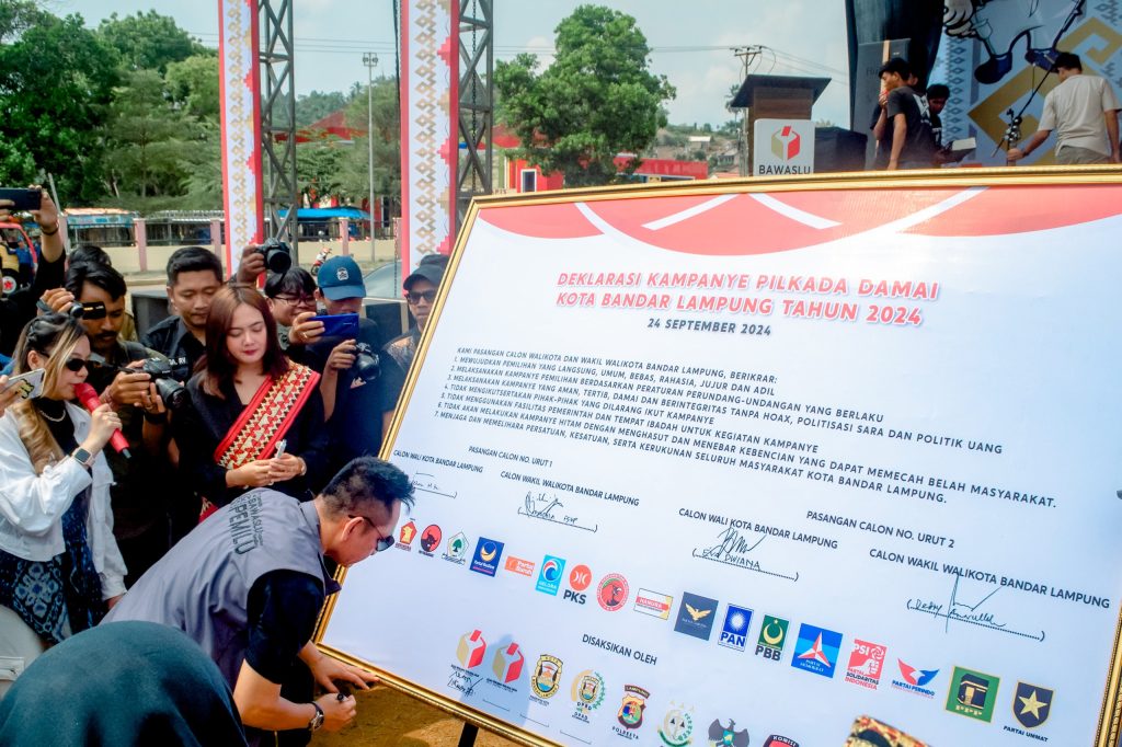 Sekretaris Daerah Kota Bandar Lampung, Iwan Gunawan, menyampaikan rasa terima kasih kepada jajaran Bawaslu atas terselenggaranya deklarasi kampanye damai ini. Ia menekankan pentingnya menjaga stabilitas keamanan selama pilkada serta bekerja sama dengan berbagai pihak guna mencegah potensi perpecahan di masyarakat. "Mari jadikan pilkada ini sebagai momen memperkokoh persatuan dan kesuksesan Pilkada 2024," ujar Iwan di akhir sambutannya.