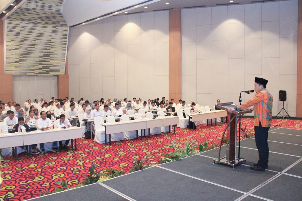 Anggota Bawaslu Lampung, Imam Bukhori, memberikan arahan kepada jajaran pengawas dalam acara Bimbingan Teknis Penggunaan Aplikasi Siwaslih untuk Pengawas Pemilihan Kepala Daerah di Kota Bandar Lampung. Acara yang berlangsung pada Sabtu (26/10).