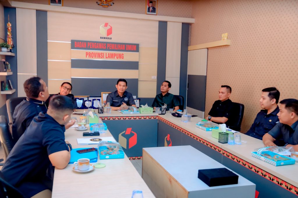 Bawaslu Provinsi Lampung menerima kunjungan dari Tim Dewan Kehormatan Penyelenggara Pemilu (DKPP) pada Selasa (20/08). Kunjungan tersebut dipimpin oleh Tenaga Ahli DKPP RI, Colombus F. Manurung, dan didampingi oleh Staf DKPP RI, Ilham Akbar Wahidi. Kehadiran mereka disambut langsung oleh Anggota Bawaslu Lampung, Gistiawan, Ahmad Qohar, dan Hamid Badrul Munir serta Kepala Bagian Hukum, Humas, dan Data Informasi Bawaslu Lampung, Indra Darmawan, serta staf Sekretariat Bawaslu Lampun di Ruang Rapat Saibatin Bawaslu Lampung.
