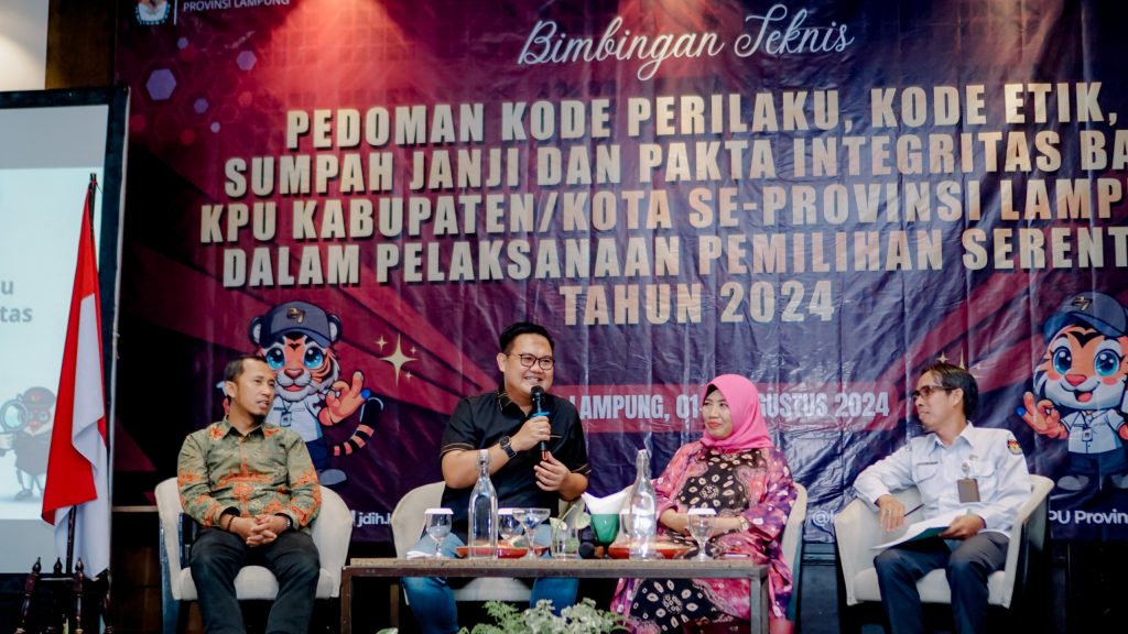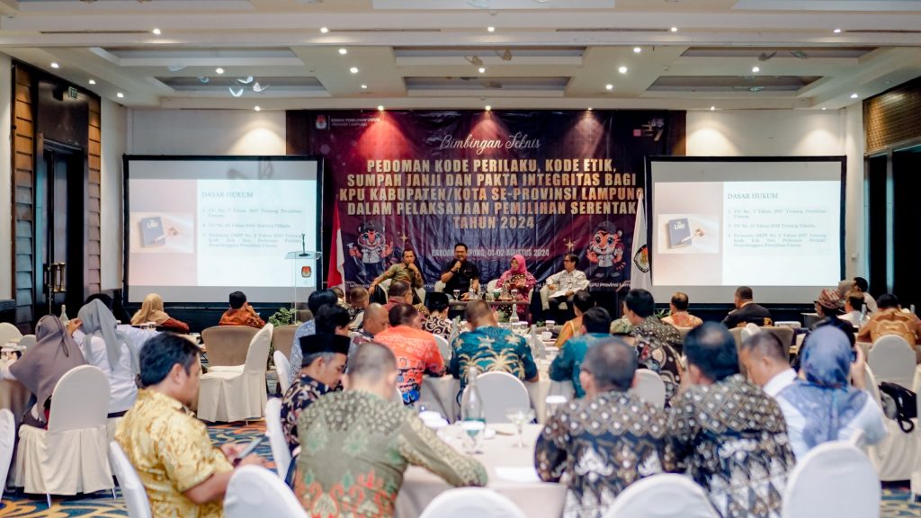 Hal itu ia ungkapkan saat menjadi narasumber Bimbingan Teknis Pedoman Kode Perilaku, Kode Etik, Sumpah Janji dan Pakta Integritas bagi KPU Kabupaten/Kota se-Provinsi Lampung Dalam Pelaksanaan Pemilihan Serentak Tahun 2024 yang diselenggarakan oleh KPU Provinsi Lampung, Kamis (1/8).