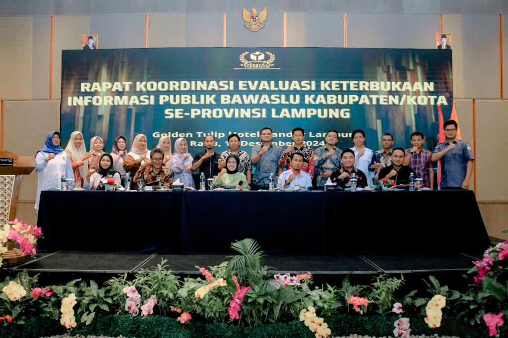 Dalam rangka memperkuat keterbukaan informasi sebagai lembaga publik, Badan Pengawas Pemilihan Umum (Bawaslu) Provinsi Lampung menggelar Rapat Koordinasi Evaluasi Keterbukaan Informasi Publik, Selasa (17/12).
