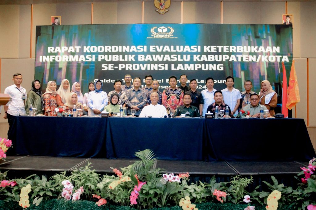 Dalam rangka memperkuat keterbukaan informasi sebagai lembaga publik, Badan Pengawas Pemilihan Umum (Bawaslu) Provinsi Lampung menggelar Rapat Koordinasi Evaluasi Keterbukaan Informasi Publik, Selasa (17/12). Kegiatan ini dihadiri Bawaslu Kabupaten/Kota se-Provinsi Lampung dan menghadirkan sejumlah narasumber ahli di bidang keterbukaan informasi dan demokrasi.