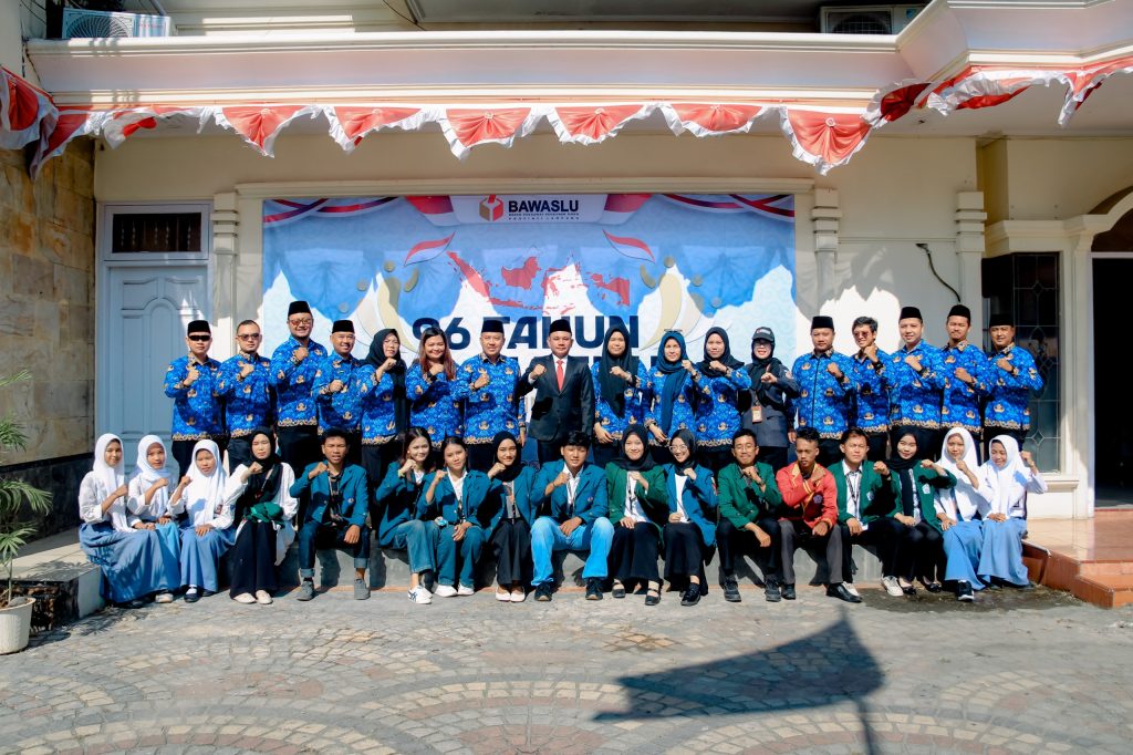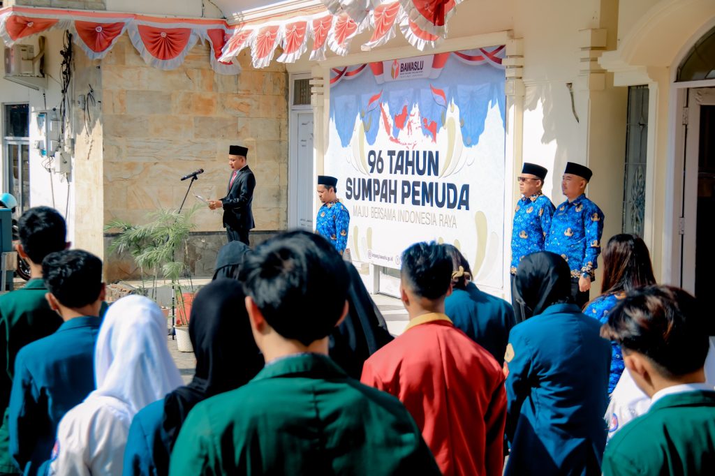 Dalam rangka memperingati Hari Sumpah Pemuda ke-96, Badan Pengawas Pemilu (Bawaslu) Provinsi Lampung menggelar upacara yang berlangsung di halaman kantor Bawaslu Lampung. Kegiatan ini dihadiri oleh jajaran pimpinan, staf sekretariat, serta mahasiswa magang dari Universitas Islam Negeri (UIN) Raden Intan Lampung dan Universitas Lampung, juga siswa dari SMK di Bandar Lampung. Upacara ini tidak hanya menjadi momentum untuk mengenang nilai-nilai Sumpah Pemuda, tetapi juga sebagai ajakan bagi generasi muda Lampung untuk berperan aktif dalam menjaga demokrasi menjelang Pilkada 2024.