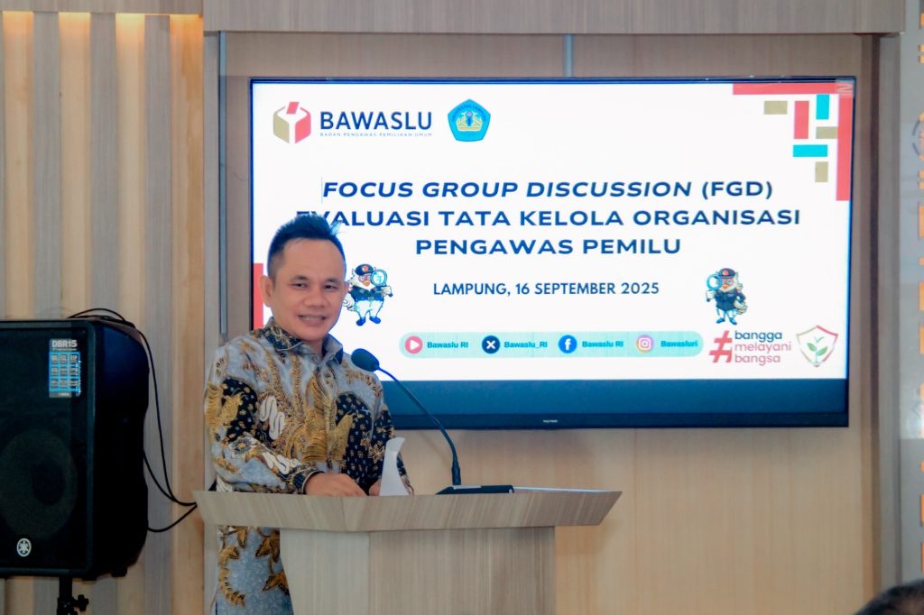 Badan Pengawas Pemilihan Umum (Bawaslu) Republik Indonesia menyelenggarakan Focus Group Discussion (FGD) bertajuk Evaluasi Tata Kelola Organisasi Pengawas Pemilu di Fakultas Ilmu Sosial dan Ilmu Politik (FISIP) Universitas Lampung (Unila), Selasa (16/9).