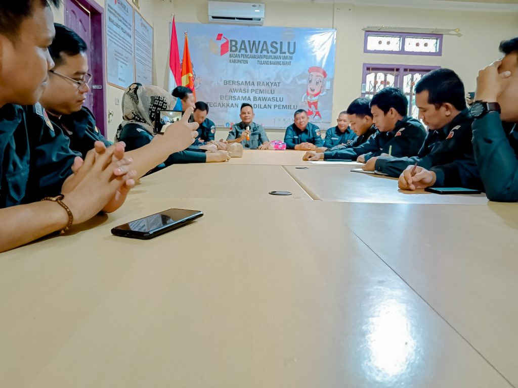Kegiatan tersebut bertujuan untuk memastikan jajaran Pengawas Pemilu di Kabupaten Tulang Bawang Barat tetap bekerja seperti biasa walaupun di bulan suci Ramadhan dan hadir Ketua dan Anggota Bawaslu Tulang Bawang Barat Midiyan, Holdin, Sukirman Hadi, Darsani serta jajaran staff Bawaslu Tulang Bawang Barat