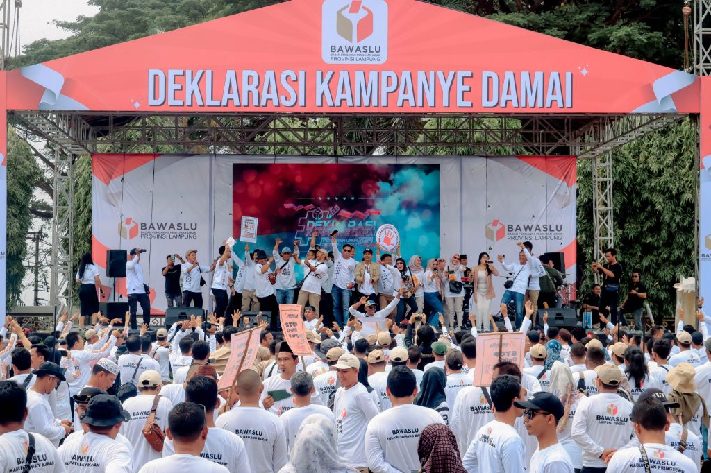 Gelaran Deklarasi Kampanye Damai oleh Bawaslu Lampung ini dihadiri oleh Ketua dan Anggota Bawaslu Lampung, Kapolda Lampung, Forkopinda Provinsi Lampung, partai politik, peserta pemilu, Bawaslu Kabupaten/Kota, Panwascam se-Lampung serta rekan-rekan media dengan jumlah kurang lebih 1000 (orang).