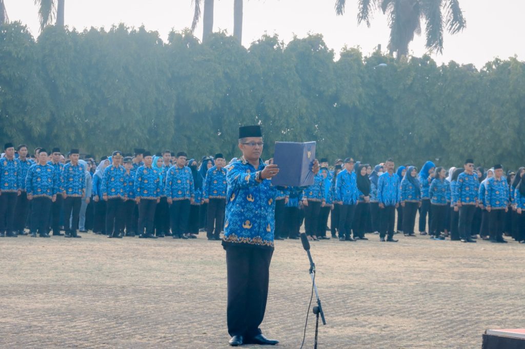 Dalam kesempatan ini Sekretaris Daerah Fahrizal Darminto, menjadi pembina apel gabungan mingguan di lingkungan Sekretariat Daerah Provinsi Lampung.