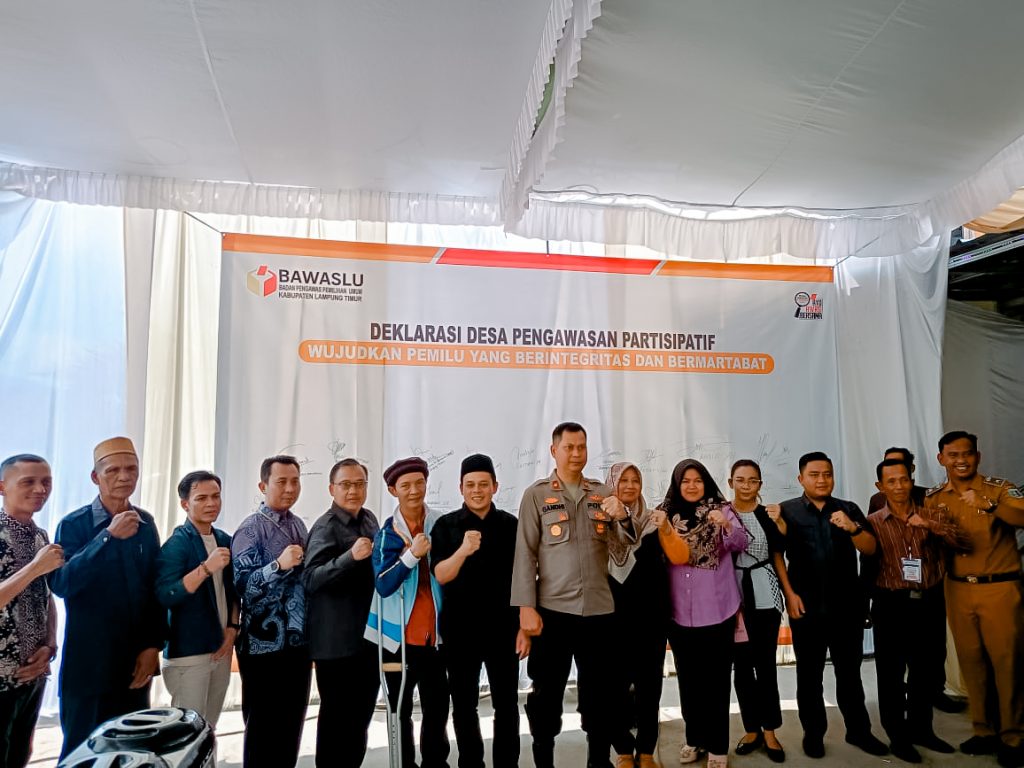 Di akhir kegiatan dilakukan penandatanganan bersama deklarasi desa anti politik uang oleh Bawaslu Provinsi Lampung, Bawaslu Lampung Timur, Polres Lampung Timur, unsur pemerintah Desa, Kecamatan, dan seluruh masyarakat yang hadir.
