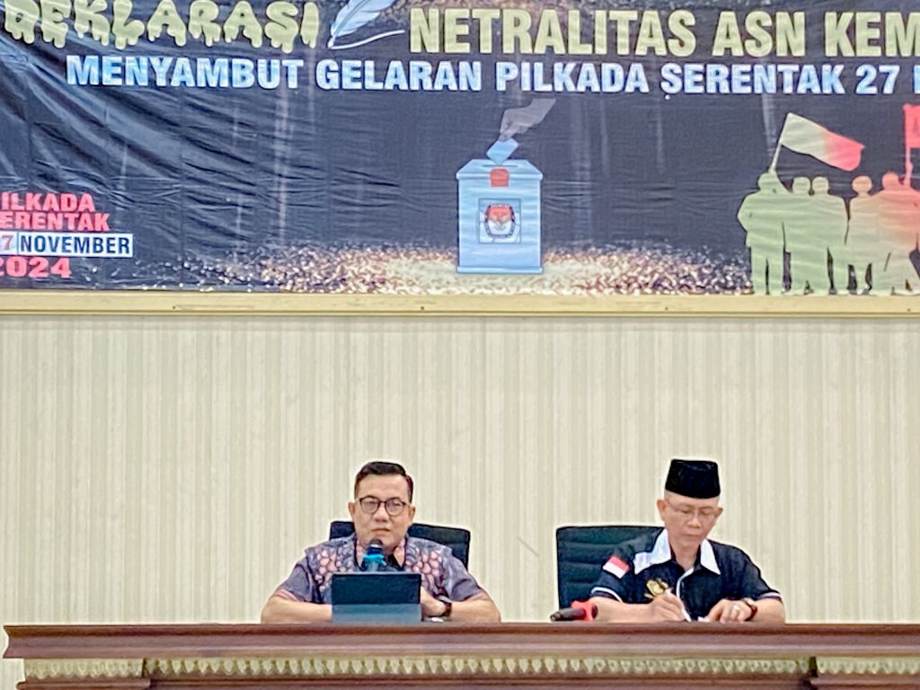 Dalam rangka menyambut gelaran Pilkada Serentak yang akan dilaksanakan pada 27 November 2024, Aparatur Sipil Negara (ASN) di lingkungan Kementerian Agama Provinsi Lampung mengadakan Deklarasi Netralitas di Aula MAN 1 Bandar Lampung, Rabu (28/08). Deklarasi ini merupakan wujud komitmen ASN untuk tetap menjaga netralitas dan profesionalisme dalam melaksanakan tugas pelayanan publik selama proses Pilkada berlangsung.