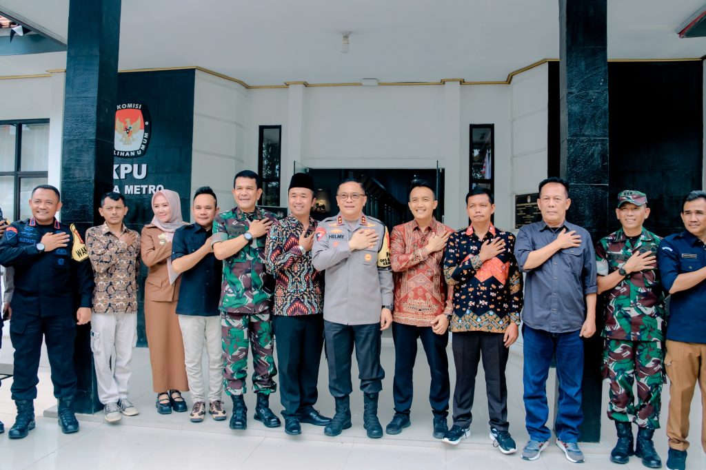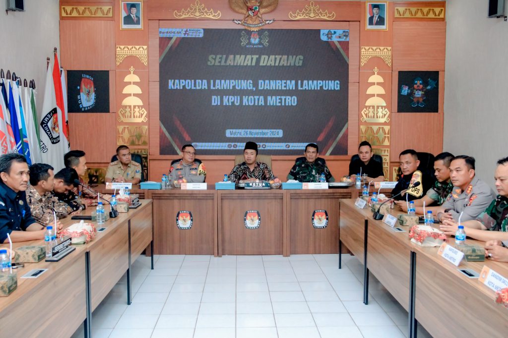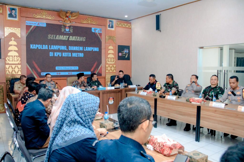 Hadir pada rapat tersebut, Kaploda Irjen Pol Helmy Santika, Danrem 043/Garuda Hitam Brigjen TNI Rikas Hidayatullah, Sekretaris Daerah (Sekda) Metro Ir. Bangkit Haryo Utomo, Ketua Bawaslu Lampung Iskardo P. Panggar, Ketua KPU Kota Metro Erza Syahrezal Aswir, Ketua Bawaslu Kota Metro Badawi Idham.