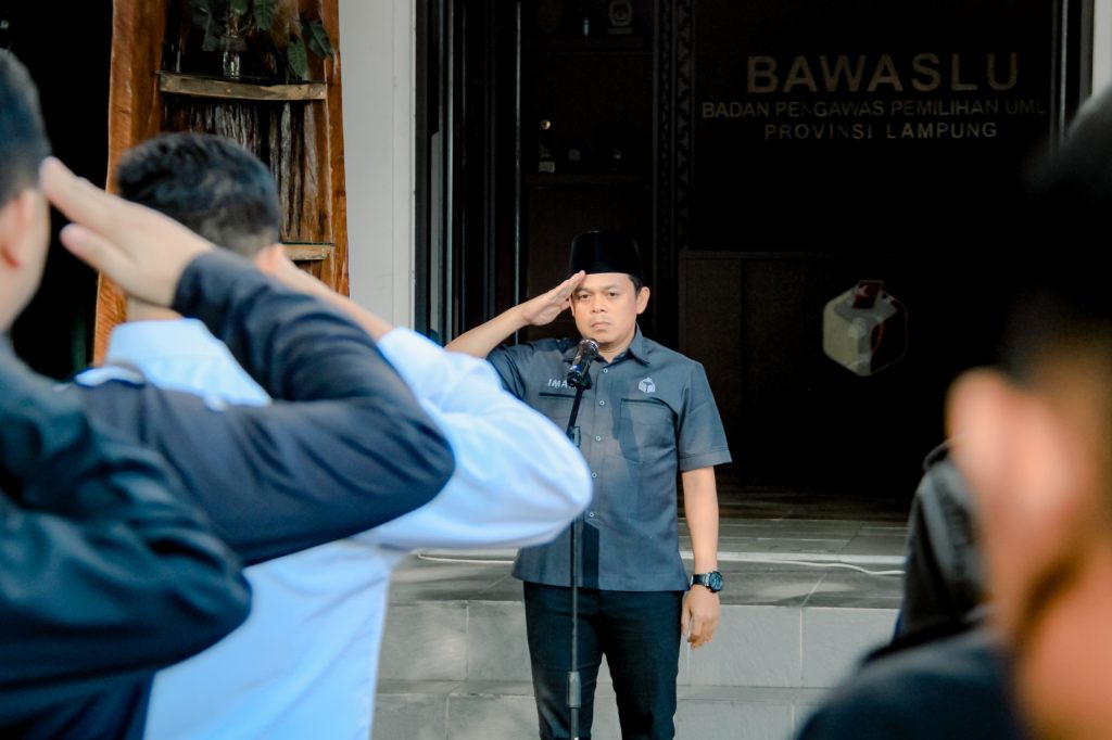 Badan Pengawas Pemilihan Umum (Bawaslu) Provinsi Lampung menggelar apel rutin setiap hari Senin di halaman Kantor Bawaslu Provinsi Lampung, Senin (25/08). Apel ini dipimpin langsung oleh Anggota Bawaslu Provinsi Lampung, Imam Bukhori, yang juga memberikan arahan penting terkait tugas kelembagaan.