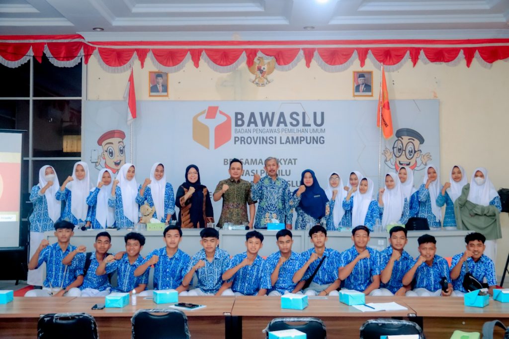 Ketua Bawaslu Provinsi Lampung, Iskardo P. Panggar beserta anggota menyambut kedatangan siswa dan siswi SMA Muhammadiyah Gisting di Kantor Sekretariat Bawaslu Provinsi Lampung, Kamis (07/09).