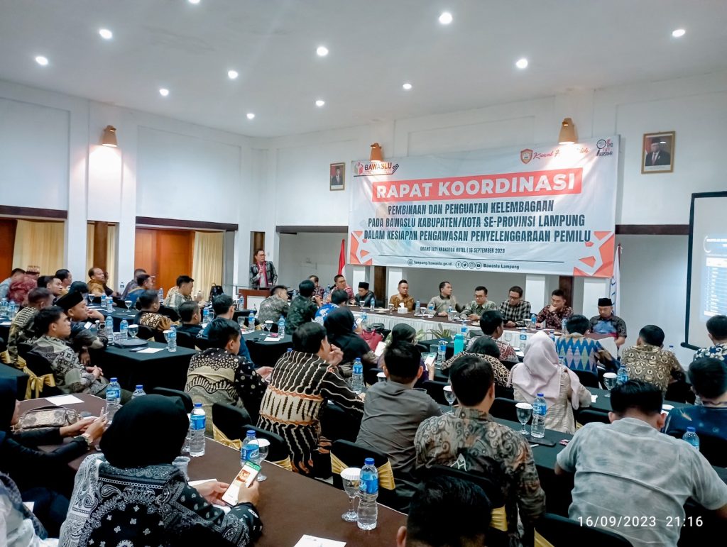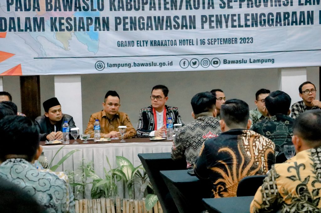 “Konsistensi meningkatkan kualitas, kegiatan hari ini tidak hanya sekedar untuk melatih SDM kita sebagai individu, tapi juga penguatan SDM secara kelompok, sehingga tidak hanya sekedar meningkatkan kompetensi sebagai Pengawas Pemilu sebagai individu tapi juga dapat mempererat hubungan antar satu sama lain, sehingga terbentuk kerjasama antar individu di lingkungan Bawaslu Se Provinsi Lampung dan menciptakan harmoni dalam melaksanakan tugas pengawasan yang efektif dan efisien,†ungkap Iskardo P Panggar, Ketua Bawaslu Lampung dalam pembukaan kegiatan pembinaan dan penguatan kelembagaan pada Bawaslu Kabupaten/Kota se-provinsi Lampung dalam kesiapan pengawasan penyelenggaraan Pemilu.
