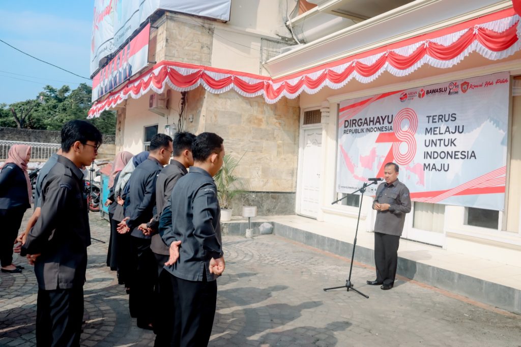 Kepala Sekretariat Bawaslu Lampung, Widodo Wuryanto Menjadi Pembina Apel rutin. (21/8)