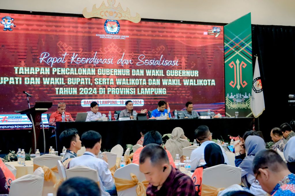 Dalam kesempatan yang sama, Ketua KPU Provinsi Lampung, Erwan Bustami, menekankan pentingnya koordinasi dan sosialisasi terkait regulasi yang digunakan dalam Pilkada 2024, terutama PKPU 8 Tahun 2024 tentang pencalonan. “Kami sebagai penyelenggara, bersama dengan stakeholders, forkompida, dan partai politik harus memiliki persepsi yang sama dalam memahami syarat pencalonan dan syarat calon,†ujar Erwan.