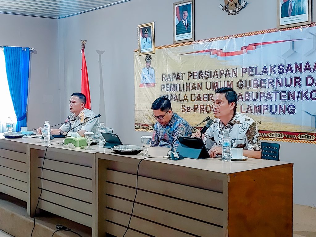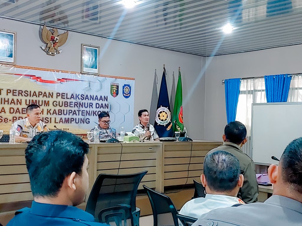 Anggota Bawaslu Provinsi Lampung, Gistiawan, hadiri Rapat Persiapan Pelaksanaan Pemilihan Umum Gubernur Dan Kepala Daerah Kabupaten/Kota se-Provinsi Lampung. Kegiatan ini dilaksanakan oleh Satuan Polisi Pramong Praja di Bandar Lampung, Selasa (12/11).