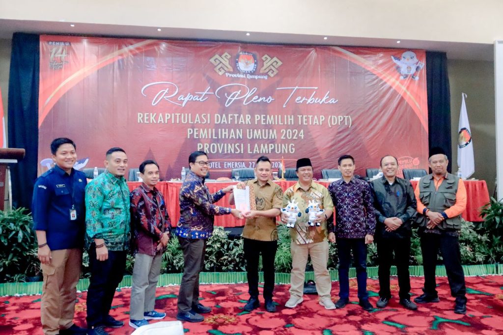 Berdasarkan dengan BA Pleno KPU Lampung No. 305/PL.01.2-BA/18/2023 tanggal 27 Juni 2023 KPU Lampung menetapkan DPT Lampung sebanyak 6.539.128 dengan jumlah laki-laki 3.326.334 dan perempuan 3.212.794 dari 15 Kabupaten, 229 Kecamatan, 2651 Desa/Kelurahan, dan 25.825 TPS.