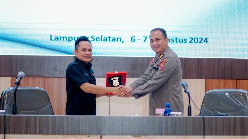 Ketua Bawaslu Provinsi Lampung Iskardo P. Panggar paparkan Kesiapan Awasi Pilkada pada kegiatan Latpraops Mantap Praja Krakatau-2024 dalam rangka pengamanan pentahapan Pilkada Serentak Tahun 2024 yang diselenggarakan oleh Polda Lampung, Selasa (6/8).