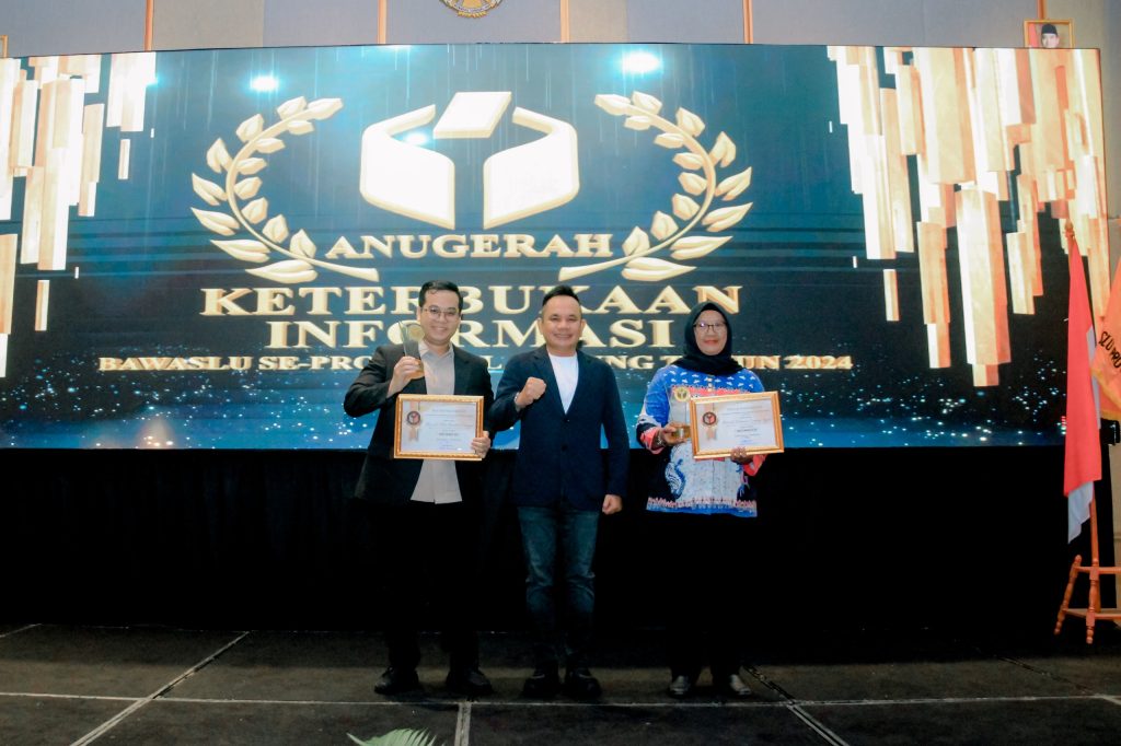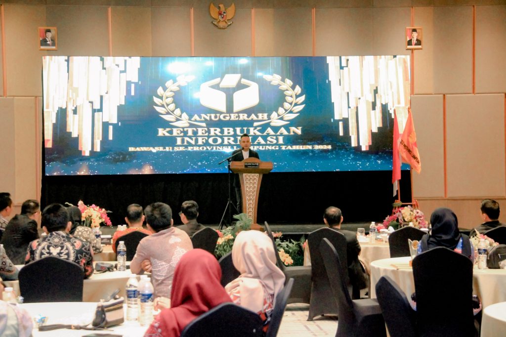 Bawaslu Provinsi Lampung menggelar acara Malam Anugerah Penilaian Keterbukaan Informasi Publik, yang dihadiri oleh para Ketua Bawaslu Kabupaten/Kota se-Provinsi Lampung, Rabu (18/12). Kegiatan ini menjadi momen penting untuk memperkuat komitmen Bawaslu dalam memberikan pelayanan informasi yang transparan dan akuntabel kepada masyarakat.