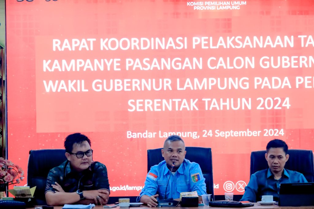 Tahapan Kampanye diatur pada PKPU nomor 13 Tahun 2024 juga Keputusan KPU Nomor 1363 Tahun 2024 terkait Pedoman Teknis pelaksanaan Pemilihan Gubernur dan Wakil Gubernur, Bupati dan Wakil Bupati, serta Walikota dan Wakil Walikota "Kampanye kegiatan untuk menyampaikan Visi-Misi Program sebagai calon kepala daerah, jadwal dipastikan 3 (tiga) hari setelah ditetapkan, dan tanggal 25 merupakan hari pertama dimulainya kegiatan tersebut, paslon, gabungan parpol, tim kampanye wajib menyampaikan SK tim kampanye kepada KPU Lampung," imbuhnya.
