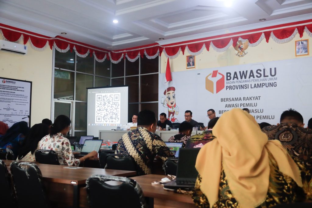 Guna mengoptimalkan pengawasan tahapan kampanye pada pemilu 2024, Bawaslu Lampung menggelar kegiatan rapat pembahasan Aplikasi Sistem Pengawasan Kampanye (Siwaskam) di Kantor Sekretariat Bawaslu Lampung (30/11).