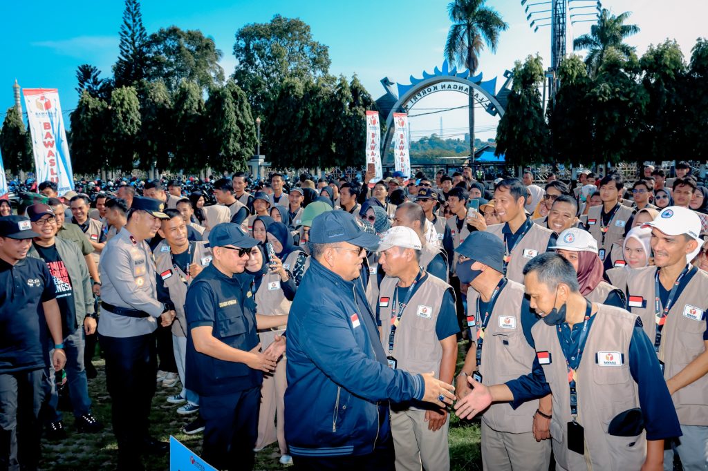 Gubernur Lampung Arinal Djunaidi, Wakapolda Lampung Brigjen Pol Ahmad Ramadhan, Ketua KPU Provinsi Lampung Erwan Bustami dan anggota Forkopimda terpantau menghadiri gelaran tersebut.